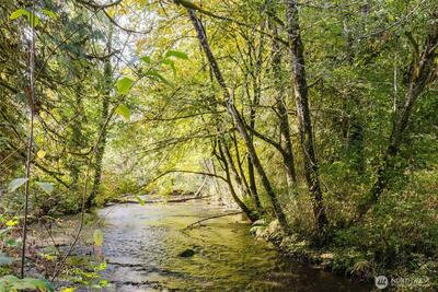 Exhale as you enter the tree-canopied lane leading to 9+ acres of pristine riverfront. This cozy, cabin-inspired home + cottage blends rustic charm with modern comfort. Wake to the sounds of trout- and salmon-filled waters, and watch eagles, heron, otters, and deer from your window or the creekside deck. Inside, craftsmanship shines with hand-forged ironwork, river rock woodstove, white pine ceilings, and a custom kitchen with pull-outs and pantry. Outside, enjoy a disc golf course, fruit and old-growth trees, a thriving garden, 2400 SF barn/shop, garage with carport, and guest (mother-in-law?) cottage. Fiber optics keep you connected in this rare retreat in harmony with nature. Don't miss this special sanctuary!