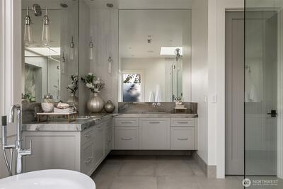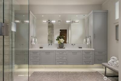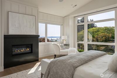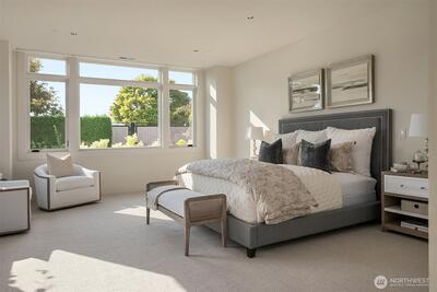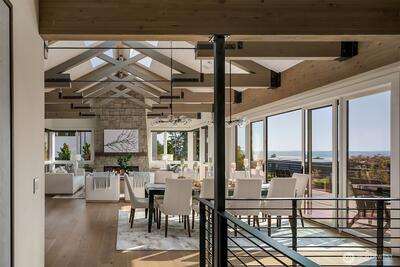Perched near the peak of Clyde Hill, this fully gated estate by Adam Leland Homes was custom-designed to maximize the protected southwest views towards Lake Washington. An entertainer's dream with circular driveway, open concept living, expansive covered outdoor space, gourmet kitchen, wet bar, and wine cellar. Luxury amenities include two primary suites, 3 fireplaces, cedar sauna, steam shower, elevator, 4-car garage, 3 powder rooms, and an infinity edge spa. The layout features a theater/media room, flex space, rec room, office/den, and dramatic architectural details with exposed steel and wood beams, and a stunning floating staircase. 360-degree security cameras, state-of-the-art home automation, and access to award-winning schools.