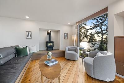 Showcasing one of the most breathtaking views in all of University Place, along with the design and build completed by the globally renowned architect, Jim Olson, this one is truly a gem! The sellers have been amazing stewards of this incredible mid century design home and are only the 2nd owners. The top floor boasts a living room with floor to ceiling windows so you are at eye level with eagles soaring the tree tops. The Sound and Olympic views are simply stunning. A dining room with a view and the kitchen with a sizable skylight and roof vent for natural cooling complete this top floor along with a powder room with its own cool view of the iconic Narrows Bridges. The middle level is a complete Primary suite with great views as well and it includes a study/den or second bedroom. Step out onto your very private deck and immerse yourself with nature. The lower level has a spacious bedroom, 3/4 bathroom and mechanical room. An in-ground lap pool with a newer heater and pool house offer