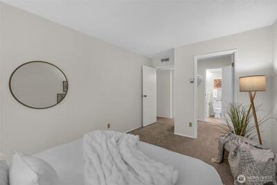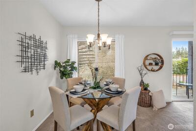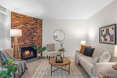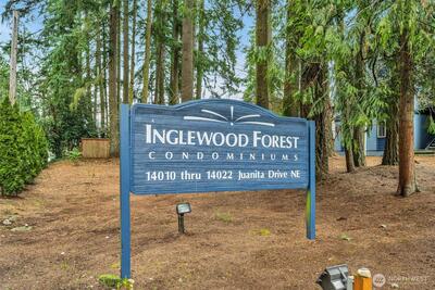 Finding your sanctuary is about more than just four walls, it’s about finding a space that inspires. Nestled in the lush, quiet enclave of North Juanita, this refined two-bedroom condo offers a restorative connection to nature. Step inside the open-concept living space where brand-new flooring and plush carpeting set a polished, modern tone. The kitchen, elevated by chic new countertops, flows seamlessly into the dining area, making it the ideal backdrop for morning espressos or intimate evening gatherings. Your primary suite serves as a true retreat, featuring a spacious walk-in closet and direct access to the bathroom for a seamless, "hotel-suite" feel. The true luxury of this unit lies just beyond the sliding glass doors. Your private second-floor balcony overlooks a tranquil, wooded greenbelt, a rare slice of privacy where you can immerse yourself in the Pacific Northwest backdrop. Located on the edge of Big Finn Hill Park and moments from the sprawling trails of St. Edwards Stat