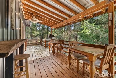 Truly unique property on 305 feet of McIntosh Lake on 5.25 acres in a gated community of Deschutes Colony community on a dead-end cul-de-sac. Land has 7-bedroom septic already in place! The home is a Barndominium with 2 bedrooms, 2 bath, 2,880 SF and must be viewed to appreciate all possibilities this property has! Large garage door to a huge shop area with a place to entertain. It has a large fireplace in the shop with TV's that convey. Bottom floor of home is currently an in-home business but can be made into living space with separate room, storage, bathroom/shower and Utility Room. Upstairs has two bedrooms, full bath, living area and kitchen with dining area. Deck to outside to view the lake and property! The land is beautiful all year round with trees, wildlife, open spaces, dock and lake. By the lake there is a gazebo and outdoor shower. This home truly has so many possibilities, so bring your vision and make this wonderful property your own. Build, Add On or make your space, wh