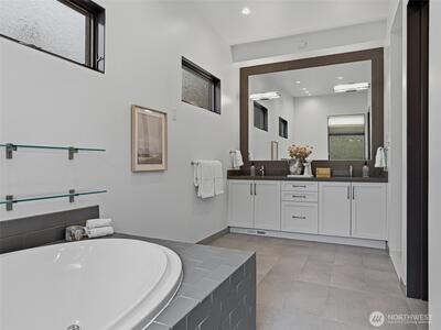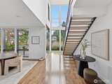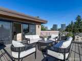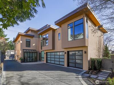 Perfectly positioned on a quiet residential street in the heart of downtown Bellevue, this one-of-a-kind residence designed by award-winning architect Lisa Kennan-Meyer blends modern elegance with effortless livability. A breathtaking entry showcases expansive 20-foot soaring glass windows, filling the interiors with abundant natural light and an airy feel. The chef’s kitchen and dining space flow seamlessly into a dramatic great room highlighted by impressive ceiling heights and refined architectural details. Upstairs, an open gallery connects the primary retreat to a café-style terrace, casual lounge area, and three private bedroom suites. The top level offers a versatile entertainment room and generous outdoor deck with sweeping city and mountain views. Impeccably maintained and moments from acclaimed dining, shopping, parks, and top-rated schools.