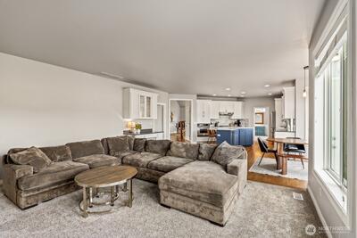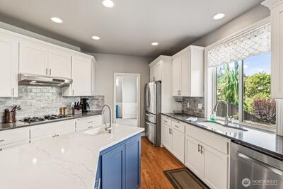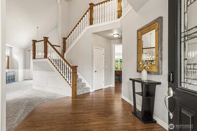 Welcome to refined comfort in one of Puyallup’s most desirable neighborhoods — where thoughtful design, generous space, and everyday luxury come together seamlessly. This beautifully appointed 4 bed, 2.5 bath home with dedicated office and expansive bonus room offers a layout designed for both connection and quiet retreat, creating the perfect balance for modern living. A soaring vaulted entry, warm hardwood floors, and abundant natural light set an inviting tone from the moment you arrive. The gourmet kitchen serves as the heart of the home, featuring quartz countertops, an oversized island with prep sink, stainless steel appliances, and a wine/beverage fridge — ideal for entertaining or relaxed evenings in. Open-concept living spaces flow effortlessly, offering comfort and versatility for daily living. Upstairs, generously sized bedrooms provide space for all, anchored by a serene primary suite with sitting area, walk-in closet, and spa-inspired five-piece bath. Ensure year-rou