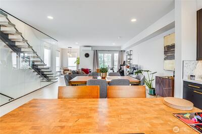 Preferred lender offering 1% credit of the loan amount towards allowable closing and prepaid costs, up to $10,000! 4-Star Built Green NW Contemporary home with elevated territorial views from the rooftop deck. Offering over 2,000 sq ft of thoughtfully designed living space across multiple levels, this 4-bedroom, 3.5-bath residence blends modern design with energy-efficient comfort. The flexible layout includes a ground-level bedroom with ensuite bath—ideal as a secondary primary suite, guest retreat, or private office—plus an upper-level primary suite with its own ensuite bath. The main living level features hardwood floors, expansive windows, and an open-concept design filled with natural light. The spacious kitchen offers stainless steel appliances, generous prep space, and a walk-in pantry. Enjoy multiple outdoor spaces including a private lower patio and rooftop deck with sweeping territorial views—perfect for entertaining or relaxing above the city. Ductless mini-sp