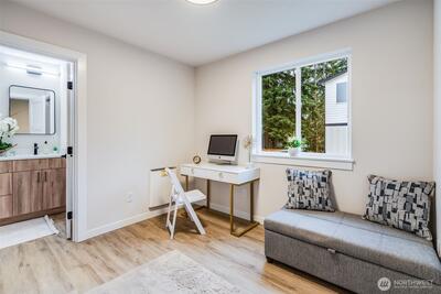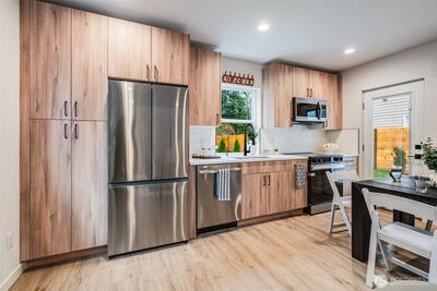 New Construction in desirable Olympic Hills! Enjoy this stand-alone home in a quiet neighborhood, on a private street. The kitchen and living area have modern finishes, with great natural light, and an entrance to your own backyard. Upstairs, three bedrooms and two bathrooms! Huge primary suite includes a master bathroom with an oversized shower, and a walk-in closet. Private 1 car garage with ample room for storage. Just minutes to the light rail, Northgate’s shopping and dining, parks, and I-5 access. A rare opportunity in a fantastic Seattle location!