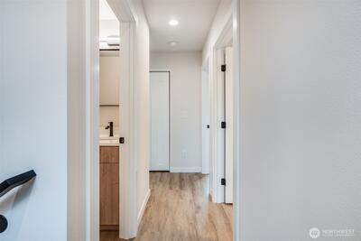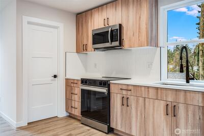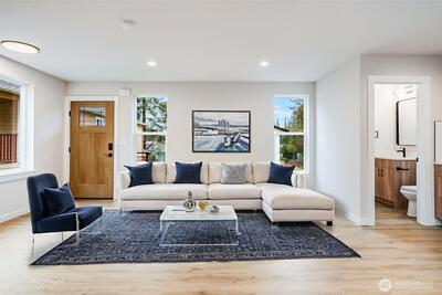 Brand-new construction in the heart of Olympic Hills! This 2-level accessory dwelling unit sits above its own dedicated garage—offering rare privacy, convenience, and elevated living. The main floor features a bright, open-concept layout with a stylish kitchen, comfortable living space, and contemporary finishes throughout. The upper level includes 3 bedrooms and a beautifully designed bathroom. Nestled on a quiet private road and minutes from the light rail, Northgate amenities, parks, and transit. A perfect opportunity for low-maintenance living, rental income, or a flexible guest space—all in a prime Seattle location.