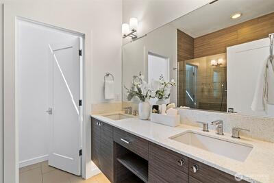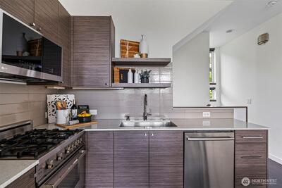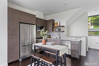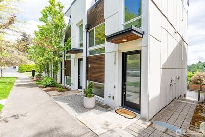 This pristine end-unit contemporary offers smart design and easy urban living. Light-filled and open, with an ideal bedroom layout: a private primary suite upstairs and a second bedroom on the ground level—perfect for guests, a home office, or rental flexibility. The main level features a sleek, modern kitchen with streamlined cabinetry and an airy living space designed for both everyday living and entertaining. Head up to your private rooftop deck to grill with friends and take in mountain views, or get your hands dirty in your own pea-patch garden below. Includes a dedicated parking space with EV charger. Move-in ready, deck to be partially refurbished by sellers before closing. No HOA dues, Walk Score of 88! Minutes to Madison Valley favorites, Capitol Hill, Downtown, Madison Park, and the Washington Park Arboretum. And the 'icing on the cake'—No HOA dues!! A rare opportunity you don’t want to miss!