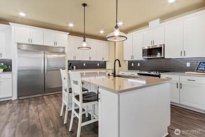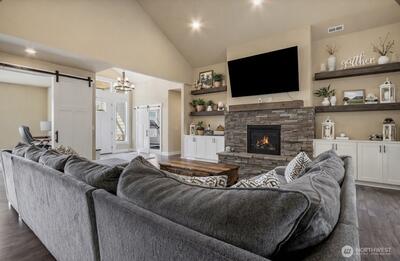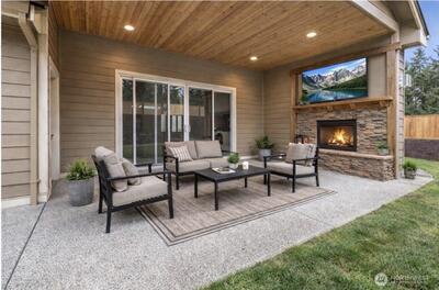 Welcome to refined rambler living in Eatonville’s premier Mountain Crest community. This stunning 3,008 sq ft home was thoughtfully designed to blend comfort, style, and everyday functionality. Offering 3 bedrooms, 2.75 baths, and a spacious open-concept layout, the heart of the home features a beautifully appointed kitchen that flows seamlessly into the dining and great room, anchored by a cozy fireplace and expansive natural light.Step outside to your covered patio retreat complete with a second fireplace, creating the perfect setting for year-round entertaining. Upstairs, a 367 sq ft bonus room offers flexible space for a media room, office, or guest suite. Additional highlights include an electric vehicle charging station and generous garage space. Located in one of Eatonville’s most sought-after neighborhoods, this is luxury rambler living at its finest.