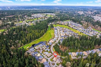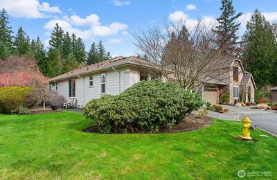 Welcome to Trilogy at Redmond Ridge, a premier 55+ Community. The desirable Bainbridge flooorplan showcases a bright, spacious great room with high ceilings, large windows, gas fireplace, and built-in speakers-perfect for both relaxing or entertaining. Rich Hardwood floors flow throughout the living spaces. The formal Dining room with an over-sized skylight is ideal for hosting memorable gatherings. The open Kitchen features a large island with eating bar, stainless-steel appliances, and Granite countertops, plus a sunny breakfast nook for casual dining. Step outside to the large, private Deck perfect for morning coffee or al fresco dining. The generous primary suite is bathed in natural light and offers a spacious walk-in closet and a private Bath with dual sink vanity. A guest bedroom with a Murphy Bed and adjacent full bath ensures comfort and flexibility for visitors. A versatile Den or Office near the entry includes glass-panel French doors, a large picture window, and cus