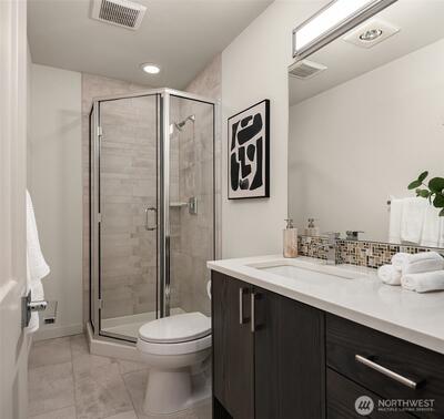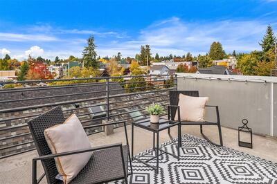 Light-filled, stand-alone townhome that blends style, comfort & functionality. Featuring 3 beds -3.5 baths, this home offers a thoughtful layout. First-floor ensuite bed, ideal for guests, office or family rm. Main level boasts living rm, dining rm, powder rm, fireplace and modern kitchen with quartz countertops & wood floors throughout. Upper floor has 2 beds, including primary w/bath and walk-in closet, 3/4 bath & laundry Enjoy a rooftop deck with territorial views, perfect for entertaining or relaxing. 1 car attached garage. Walk Score of 91- steps away from vibrant Ballard shopping, restaurants, coffee shops, & local markets. Proximity to top-rated schools and easy access to major transit routes round out the amenities this home offers