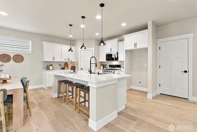 Welcome to Horizon, the new construction community built by Harbour Homes. This 2,223 sq. ft. is situated on a sizable lot with sought-after features. The open-concept great room, kitchen & dining area, are perfect for entertaining with easy access to the covered deck to enjoy outdoor living year-round. A designated office/work space with a built-in desk and a door for privacy on the main floor, no need to use a bedroom as office space any longer in this desired floorplan. The abundance of kitchen cabinetry, a corner pantry and a huge center island with quartz counters are ideal for cooking and gathering. Enjoy the natural light that flows into the great room or a cozy night by the fire. A well appointed primary suite is ideal for relaxation with the 5 piece bath including soaking tub. Three additional bedrooms located down the hall and full guest bath with dual vanity. Close proximity to shopping, Hwy 18, schools & recreation. Welcome Home. Site reg policy.
