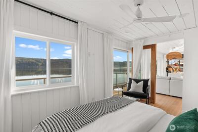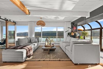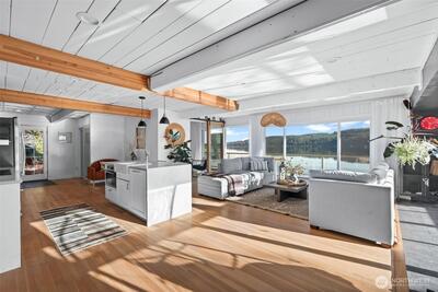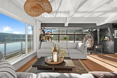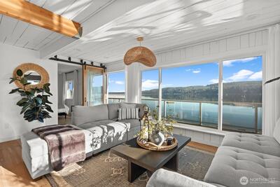 Welcome to the Hood Canal- the region's favorite waterfront retreat. Enjoy single-level living on 70 feet of rare low-bank frontage, where the shoreline is just steps from your door. This fully remodeled cottage captures sparkling water views through expansive windows that frame the ever-changing tides. The open-concept living area is light-filled and elegant, anchored by a cozy wood-burning fireplace. A beautifully refreshed kitchen offers modern appliances, clean lines, and effortless flow for everyday living and entertaining. Peaceful bedrooms and spa-inspired updated bathrooms create a comfortable, low-maintenance escape. Multiple-zone mini splits provide efficient year-round heating and cooling, and elegant furnishings make this home truly turnkey. (Fully furnished option available) A private gated entry and dedicated parking add convenience and privacy. The expansive waterfront deck features a fire table, loungers, and BBQ -perfect for sunset gatherings. Kayak, swim, fish,