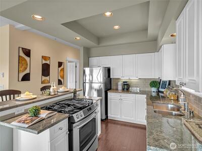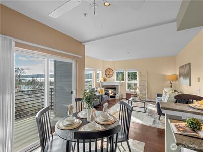 Elevated condo living with BIG, north end, Lake Washington views! This well-maintained 2 bedroom, 2 bath home sits perched above Kenmore's waterfront soaking in the natural beauty and incredible daylight. The functional layout features a spacious primary suite with en suite bath and walk in closet. Bright kitchen with gas range, updated countertops and backsplash, ample cabinetry, and a breakfast bar opening to the dining and living areas. Relax by the gas fireplace or step onto the covered deck to take in the views and watch the float planes come and go at Kenmore Air. Ideally located near Log Boom Park and just steps to the Burke-Gilman Trail for walks, jogs or bike rides. Several walkable dining options. Easy access to Seattle, Kirkland, Bothell or Edmonds. Nearby light rail just 10 minutes away for effortless commuting. One car private covered garage with storage unit. Well maintained HOA with low dues, recently painted with a new roof. Come to Compass Pointe to see what all the hy