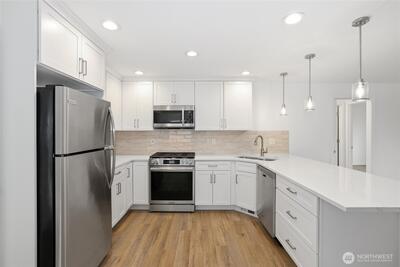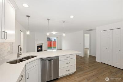 Brand new roof installed 3/23/26 adds immediate value and peace of mind to this beautifully maintained home in the Hawks Prairie Lacey area. Classic single-level 3-bedroom, 2-bath home featuring high-end finishes you won’t find in many new construction properties. The fully remodeled kitchen shines with new cabinets, quartz countertops, classic modern ceramic tile, an undermount sink, and stainless appliances. Both bathrooms have been thoughtfully updated with new quartz-topped vanities and stylish lighting. The laundry room offers added convenience with new cabinetry for extra storage. Outside, enjoy a neat, tidy, low-maintenance yard designed for easy living and effortless enjoyment. Just minutes from shopping, restaurants, and I-5 for an easy commute to JBLM or downtown Olympia.