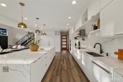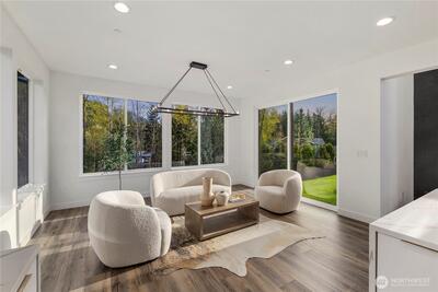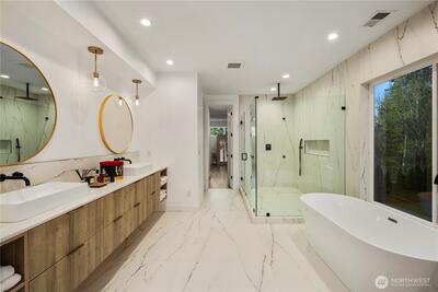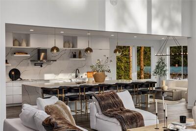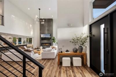 An extraordinary fusion of modern luxury and natural beauty, this 4,300 sqft Snoqualmie estate is a true sanctuary. Privately nestled on nearly an acre the home showcases soaring ceilings, a striking floating staircase, and exquisite designer finishes throughout. The custom European-inspired kitchen features sleek white cabinetry, state-of-the-art Miele appliances, and a dramatic 14’ waterfall island. Indulge in the spa-like primary suite with a double shower, soaking tub, and expansive walk-in closet. A main-level office, generous lower-level living space with separate entrance, and outdoor terraces, create a lifestyle of comfort and distinction. Effortless access to I-90, Bellevue, and award-winning schools. Timeless elegance, redefined.