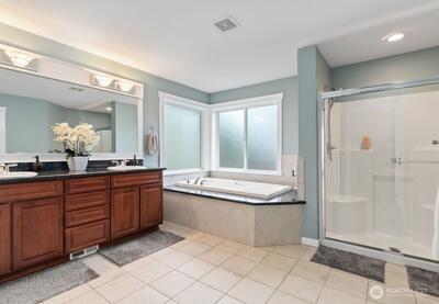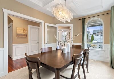 Spacious, versatile, and beautifully refreshed, this 5 bedroom + 2 flex room home with a rare 3 car garage stands out in the desirable Ashton Woods neighborhood of Bonney Lake. Offering 2,913 sq ft and 2.5 baths, this move-in ready home provides the space and flexibility today’s buyers are looking for. The functional layout features real hardwood floors, an open concept living area, formal dining space, and a well-appointed kitchen with double oven, stainless steel appliances, and abundant cabinetry for exceptional storage. The kitchen nook and flexible floor plan make everyday living and entertaining effortless. With five true bedrooms plus two dedicated flex rooms, this home offers seven separate rooms to grow, host, or comfortably work from home. The spacious primary suite includes dual vanities, soaking tub, and walk-in closet. Recent updates include brand new carpet, fresh interior and exterior paint, new garage door (installed 3/5/26), and newer water heater, allowing the next