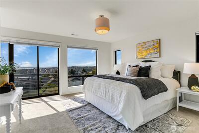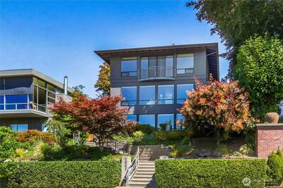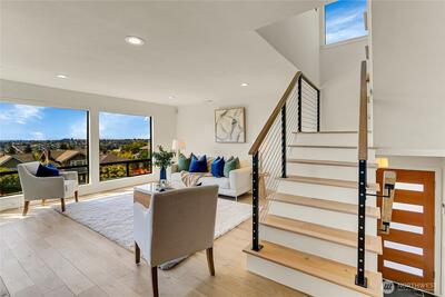 Rare opportunity combines luxury, views & walkability on the coveted Queen Anne Blvd loop. Floor-to-ceiling windows frame expansive western views of the Sound, with epic sunsets over the Olympic Mtns from all 3 levels. Top level boasts 3 bedrooms with lavish primary suite. Light-filled open concept main floor is an entertainer's dream with formal living & dining, spacious kitchen, cozy den, and 2 bedrooms. Downstairs, indoor/outdoor entertaining area with folding glass wall opens completely to beautiful backyard. Additional well-finished separate 1 bedroom apartment offers many options. Award winning Coe Elementary, Macrina Bakery, Ken’s Market and more just a block away, with easy access to QA Ave. Newly renovated, this home has it all!