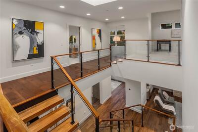 A chosen position within the award winning neighborhood of Summerwell. 16 homes custom designed to align with nature and connect to their sites. This 4,863 sf home envelopes its surroundings while channeling the energy that striking design illuminates. Floating walnut stairs, soaring spaces, a silhouette of symmetry in design, the stalwarts of stellar architecture that doubles as art as McCullough design does so seamlessly. Beyond its pedigree, a well designed floorplan offers the flexibility for life. Ease of entertaining on the main floor that opens on both sides to the outdoors where stone fireplaces, year round spaces and verdant backdrops merge. Epicurean kitchen with dual sinks, dishwashers & three ovens-Miele and waterfall Quartz as the backdrop. A guest suite/office reside in tandem with the three quarter bath. Upstairs the primary suite, two additional suites, laundry and bonus room provide privacy and interaction. The lower level is host to a theatre/flex room, mud room, ove