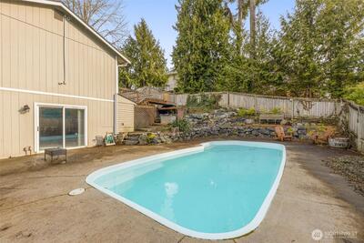Welcome to the coolest house on the block! Nearly 2,000 sq ft with 4 bedrooms and 2.75 baths, featuring warm hardwoods, a cozy gas fireplace, and a bright kitchen with skylight, island, pantry, and SS appliances. The spacious lower-level family room opens to the backyard – complete with a sparkling pool! Enjoy a fully fenced yard, a large deck, and an updated gas furnace. Tucked in a commuter-friendly Parkland location near Hwy 512, you’ll want to call this house home.