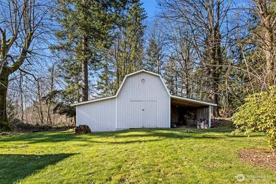 Rare opportunity on nearly 1.5 acres in desirable Maple Valley. This 4 bedroom, 2.5 bath split-entry home offers 2,470 SF of living space and sits on two parcels totaling 65,406 SF. The primary parcel is 0.87 acres and the additional lot is 0.63 acres, providing exceptional space, privacy, and flexibility. A private gated driveway opens to expansive lawn areas, mature trees, and a peaceful setting. The home features two fireplaces, spacious living and dining areas with deck access, and a lower-level rec room with patio access—ideal for entertaining or multi-generational living. Functional layout with generous room sizes, dedicated laundry room with storage, and abundant natural light throughout. Solid bones and ready for cosmetic updates to build equity. A substantial detached multi-bay shop offers outstanding versatility with generous ceiling height and ample room for vehicles, equipment, projects, or storage. An additional barn/shed expands the possibilities even further. With dual