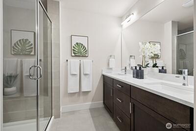 Welcome to Shadow Creek by RM Homes! A quiet cul de sac community of just 8 homes. The 2697 plan is a spacious & open layout. Main floor boasts a welcoming two-story entry, light-filled great rm w/ fully tiled gas FP, BR/office and 3/4 bath. Well-appointed kitchen w quartz counters, KitchenAid appliances, soft-close cabinets w pull-out shelves, & pantry. Sun deck w backyard access. Second floor offers a large primary bedroom w ensuite and walk-in closet. The spa-like bath offers extensive tile, dual sinks, walk in closet & large shower. two more BRs, main bath, bonus rm, and utility rm w extra storage. 3 car garage, fenced/landscaped yard with irrigation, AC, EV charging. Prime location with convenient access to major highways, shopping, dining, & schools. Move in Ready!