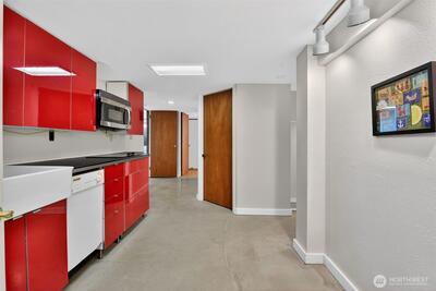 This 5-bedroom Bryant home offers a versatile layout ideal for multi-generational living or flexible use. The main level features original hardwood floors and bright living spaces centered around a wood-burning fireplace. The fully finished lower level functions as a private MIL configuration with its own kitchen and separate entrance. The lower level was leased for $2,000 per month in 2020 (buyer to verify), offering meaningful income-offset potential. Solid brick construction, durable metal roof, and attached garage provide long-term stability. Multiple outdoor living spaces include two decks, lush green lawn areas, and terraced gardens — ideal for entertaining, gardening, or enjoying private creekside surroundings. Located within the Bryant Elementary attendance area (buyer to verify) and just minutes to University Village, Burke-Gilman Trail, PCC, parks, and transit. Vacant and move-in ready.