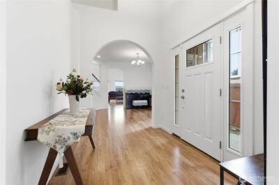 Enjoy beautiful golf course views from this well appointed 3392 sq ft home. Three bedrooms + expansive loft and den. This elegant home has a grand foyer with high ceilings, white millwork and plenty of natural light. Fully fenced yard. Three car garage for parking and storage. The spacious main floor primary suite features a large custom-made walk-in closet and convenient access to the back yard. The primary bath has a granite countertop and a double vanity for added convenience. The main level showcases engineered hardwood flooring in most of the living areas, adding warmth and durability. The kitchen is designed for everyday living and entertaining, with granite countertops, a butler’s pantry with glass-front cabinets and newer stainless steel appliances. The kitchen opens to the family room where you can relax beside a granite-surround electric fireplace. All three bathrooms include heated tile floors for year-round comfort. Central air conditioning keeps the home comfortable dur