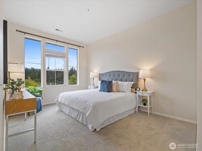 $10,000 seller paid closing costs to buy down your rate! No rental cap and pet friendly community, ideal for both homeowners and investors. Perched at the top of the neighborhood, this stunning 2 bed, 2 bath end unit townhome offers sweeping views of Tiger Mountain and the Issaquah Highlands. Soaring 10'+ ceilings and an abundance of natural light create an airy, open feel throughout. The well appointed kitchen features a breakfast bar and flows seamlessly into a separate dining area and a warm, inviting living room anchored by a gas fireplace, perfect for cozy Pacific Northwest evenings. Step out onto your private balcony to take in the views and fresh mountain air, whether you're sipping your morning coffee or winding down at the end of the day. The spacious primary suite is a true retreat, comfortably fitting a king bed and complete with a generous walk-in closet and full en suite bath. The second bedroom and additional full bath offer flexibility for guests, a home office, or mo