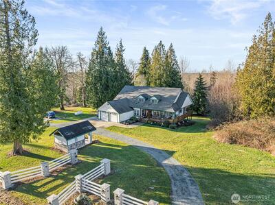 NEW PRICE at this 5,276SF, 3 bed, 2.75 bath custom home w/ a fully finished daylight basement on a quiet and secluded 5 acres! Open/great room concept offering a large living space w/ hardwood floors, free standing Country wood stove, soaring vaulted ceilings, and wrap around deck access. Gourmet kitchen w/ Viking SS appliances, slab granite countertops, pot filler above range, hickory cabinets, huge island with bar seating, breakfast nook, and a butler's pantry w/ walk-thru to the spacious dining room. Vaulted primary suite on the main w/ hardwood floors includes private bath, jetted & air tub, custom tile walk-in shower and walk-in closet. Large bonus room, up along with a full bath and 2 vaulted guest bedrooms. Main floor office. Utility room w/ tile floors & mud sink. Oversized rec-room and additional office space in the daylight basement perfect for hobbies, crafts or just hanging out. Dual heating systems w/ 11-zone hydronic floor heat throughout (including all of the basement) H