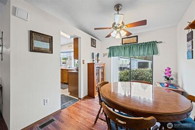 Welcome to Rio Verde, a welcoming and established 55+ gated community in the heart of Auburn. Offered at an affordable $129,500, this warm and inviting home is perfectly suited for comfortable, low-maintenance living. Situated on a desirable corner lot, the property features dual carports with space for up to four vehicles—ideal for visiting friends. A covered walkway leads from the carport to the front entry, providing convenience and protection in every season. Inside, the home offers a clean, thoughtfully designed layout with two bedrooms and two bathrooms. The primary suite is privately positioned at the back corner of the home, creating a peaceful retreat. Laminate flooring adds both durability and style, while the wood stove brings warmth and charm. The south-facing kitchen is filled with natural light thanks to its large windows, creating a bright and cheerful space for morning coffee or casual meals. A sliding door opens to the covered back carport area, which also serves bea
