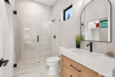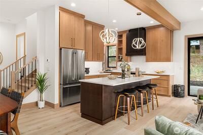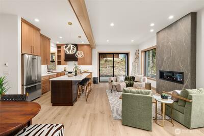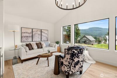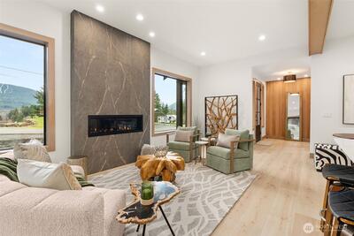 Ski White Pass, hike, walk to Cowliz river & town. Resort lifestyle elevated in this new home on large lot w/2 primary suites, attached ADU above garage & the best of indoor/outdoor living. Designer selected throughout. Wood accent entry wall, metal & glass barn door to mudrm/laundry. High grade LVP, great room w/gas linear fireplace w/floor to ceiling lrg format tile. Slider to outdoor covered living, wood ceiling, prewired for heater. Kitchen w/custom thin shaker trim cabinets, Quartz counters, full height tile backsplash, GE Café appliances & custom wood gas range hood. Showstopper open pantry w/floating shelves, window & counter to ceiling tile backsplash. Main level primary ensuite w/beautiful deco tile walls, shower bench & generous mirrored door closet. Guest bath w/acoustic wood accent wall, Upper level 2nd primary w/peek-a-boo downtown Packwood view, blt-ins, walk-in closet & ensuite w/full tile shower w/glass barndoor. Addtl bdrm, full bath & spacious loft. Separate slate en