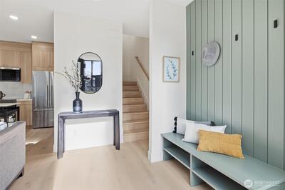 Set within the sought-after Harbor 26 community, this thoughtfully designed home delivers efficient, design-forward living in the heart of Eastlake. The open main level maximizes every inch with a seamless flow between kitchen and living spaces, elevated by modern finishes and clean, contemporary lines. The bedroom retreat is paired with a well-appointed primary bath featuring refined finishes and a streamlined layout that prioritizes both function and comfort. A spacious walk-in closet offers added versatility, easily doubling as a dedicated workspace or flex area. Above, a private rooftop deck provides a quiet escape with glimpses of Lake Union and the surrounding cityscape. Located in a gated community just steps from the shoreline, this home delivers low-maintenance urban living without compromise. Built by DEP Homes Eastlake, a name synonymous with quality and thoughtful design.
