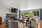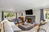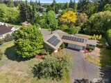 Rare Offering in Clovercrest – A Highly Desirable Gated Community! Assumable VA Loan at 3.75%! Nestled at the end of a private, sprawling driveway on 1.29 elegantly manicured acres, this stunning Mid-Century Modern rambler offers serene creekside living in an exclusive setting. This spacious 4-bedroom, 3-bath home with a daylight basement features a thoughtfully designed layout with both formal and casual living spaces—perfect for entertaining and everyday comfort. Expansive picture windows flood the home with natural light and frame tranquil creek views from the living room, dining room, and kitchen. The updated eat-in kitchen offers generous storage and beautiful hardwood floors, blending timeless charm with modern convenience. The tastefully designed primary suite includes a tile-surround shower and refined finishes. Downstairs, the daylight basement presents ideal multi-generational living potential with space for MIL accommodations and an easy wet bar conversion. A spacio