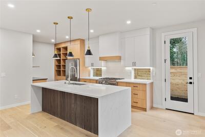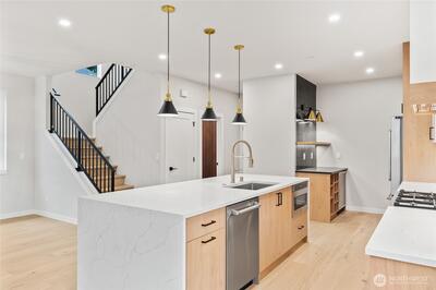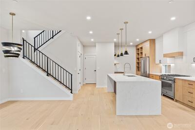Google Maps 12426 NE 90th St Kirkland for correct home address- Tucked into a lively North Rose Hill neighborhood, Greencity presents the ISLA, a boutique collection of four modern cottages designed for easy, comfortable living. This 3 bed, 2.5 bath home opens to bright, connected living spaces centered around a statement waterfall island, custom cabinetry with glass cabinet doors, quartz counters, Bertazzoni appliances, a beverage fridge, and a fireplace that anchors the room. Year-round comfort comes from efficient ductless heating and cooling throughout the home, while a convenient powder room on the main floor makes entertaining easy. Upstairs, the vaulted primary suite feels airy and private, featuring a generous walk-in closet and a spa-inspired five-piece bath. A dedicated laundry room keeps everyday living organized. Each residence includes a garage plus an additional dedicated parking space beside the home. Minutes from downtown Kirkland’s waterfront, parks, shopping, and di