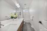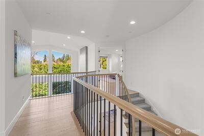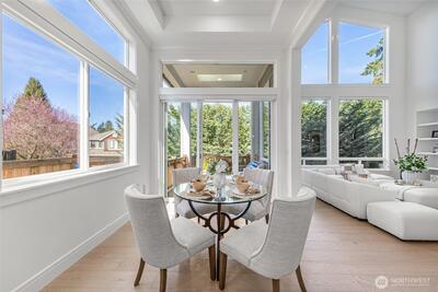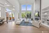 Nestled in a quiet neighborhood, this elegant Murray Franklyn home in the coveted Newport Hills of Bellevue is a perfect blend of architectural taste and refined luxury. Soaring ceilings and walls of windows in the living space flood the interior with natural light. Expansive open-concept floor plan is anchored by cozy gas fireplace with beautiful floor-to-ceiling tile surround. Chef’s kitchen showcases high-end appliances, designer cabinetry, and oversized island with waterfall slab countertop. The primary suite on upper level is your private retreat boasting spa-inspired luxurious bath with in-floor heating, and huge walk-in closet with built-in drawers and shelves. Versatile bonus room can be media room or play room. 2nd primary suite with private bath on main level is designed for guests or multi-generation living. Delightful den is great for work from home. Covered deck leading to fully fenced backyard is perfect for outdoor relaxation. Engineered hardwood floors throughout,