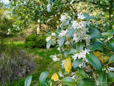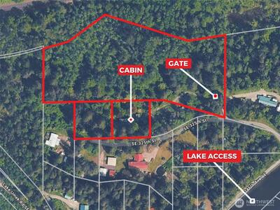 5.672 acres comprised of 3 parcels with a small cabin and deeded water front access to Lake Umek. The cabin is about 40x12 in size & fairly rustic, but provides a functional base for recreation, weekend stays, or future improvements. It has electric on-site, though it is currently disconnected. There's also a shallow hand-pump artesian well with a filtration system that was used for potable water. The average depth of conventional wells is under 75 feet in the neighborhood and soil types on the property are generally considered suitable for supporting septic systems - though buyer should verify to their satisfaction. The property features a small pond and creek and showcases a diverse array of flowers, native flora, berries, and fruit trees, creating a peaceful natural setting. Kanaskat-Palmer State Park, a popular destination for hiking, fishing, and rafting on the Green River, is less than 5 minutes away. Property is situated less than 15 minutes SE of Ravensdale providing convenient