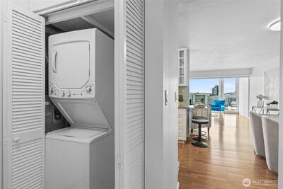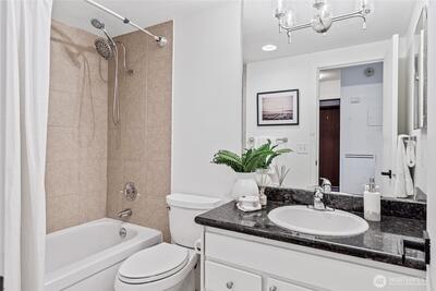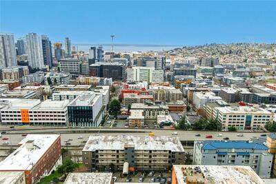 Rarely available generously sized 818 SF one-bedroom in sought-after Shalali Condos. This light and bright unit features a functional open floor plan with a cozy gas fireplace (gas included in HOA dues) and floor-to-ceiling windows showcasing spectacular, unobstructed west-facing views of the Space Needle, Seattle skyline, Lake Union, and the Olympic Mountains, along with amazing sunset views. The remodeled kitchen includes granite countertops, stainless steel appliances, and full height cabinetry. Fresh paint enhances the sun-drenched living space. The spacious bedroom easily fits a king-sized bed and offers a wall of floor-to-ceiling closet space and storage. In-unit washer/dryer, with additional full-sized laundry on 3 floors. Includes an assigned parking space on the same level as your unit (no stairs). Plenty of street parking on Melrose Ave E for guests or an additional vehicle. Well-run HOA, with dues covering gas, water, sewer, and more. No rental cap and no special assessments