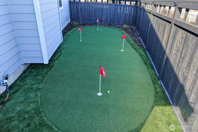 This desirable corner lot showcases the modern Ellipse home design in the sought-after Regency at Ten Trails 55+ community. Truly move-in ready with seller upgrades of top-down/bottom up custom blinds, 220 EV charger, drip line irrigation in backyard, auto timer front yard sprinkler system, custom landscaping in backyard with water feature, no-mow turf lawn, hot tub and custom putting green. Stackable glass doors, with custom horizontal blinds, extend the living space to a covered patio with the second gas fireplace and barbecue gas hookup for ideal year-round enjoyment. The backyard wraps around to a custom putting green for added fun and relaxation. The well-appointed kitchen flows into the living area which features a gas fireplace and abundant natural light. The spacious primary suite offers dual sinks, a walk-in shower, abundant storage, and a generous walk-in closet. Enjoy miles of scenic trails, gather at the clubhouse for social events, take a swim in the indoor pool, work out