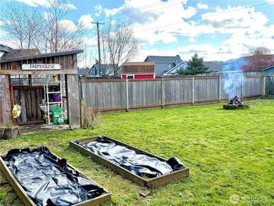 This easy accessible rambler has been renovated with new flooring, paint, and kitchen countertop within the past 2 months. Roof and exterior paint are only about 5 years old. French Doors open to backyard for indoor-outdoor entertainment. Backyard has 2 mature Honey Crisp Apple trees, gardening space, a potting shed, and a fire pit. The Garage has extra storage with a folding ladder for access. Walking distance to grocery shopping, downtown restaurants, parks, and schools. Fishing in the Carbon River and golfing are nearby.