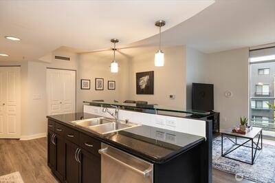 Filled with west-facing light, this cheerful and peaceful one bedroom unit in the Concord's South Building has been lovingly updated by its owner. The home has all new flooring, new furnace (with AC!) updated kitchen and bathroom - all intended to make this place a peaceful home in the heart of the city. The bedroom is large with a view of the courtyard and has a walk-in closet. The kitchen has tons of storage and an island that opens to the separate living and dining spaces. In-unit laundry, parking spot and storage unit! The Concord is a full service, well managed building with 24/7 concierge, fitness center, sauna, spa, business center, rent-able guest unit ($100), conference and media rooms, decks on 2nd and 6th flr. HOA dues cover common areas, earthquake insurance, doorman, water, sewer, gas, garbage and hot water. Blocks to the Sculpture Pk. 2 pets allowed- see rules! No rental cap! Blocks to the Sculpture Garden, Elliot Bay trail, Pike's Place Market and Seattle's best
