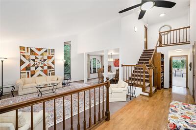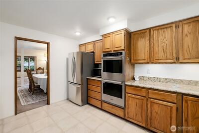 Discover this coveted Winterwood Estates home, where obvious pride of ownership meets a serene rural feel. Nestled on a lush, shy-acre lot, this 2,670sqft residence offers tranquility and backs up to a true greenbelt for ultimate privacy. The heart of the home is the updated kitchen, featuring elegant quartz counters, and modern appliances. Entertain with ease in the formal living and dining areas, or relax in the family room centered around a cozy gas fireplace. Vaulted ceilings and large windows frame peaceful views of greenery from every room. The thoughtful layout includes a desirable main floor bedroom and 3/4 bath, ideal for guests, in-law, or a home office. Upstairs, find a spacious primary suite with an en-suite and a dedicated sitting area. Outdoor living is perfected on the deck overlooking an expansive, park like backyard that invites wildlife and exploration. This property is rounded out with a 3-car garage and an additional storage shed. Located in the Kent School District