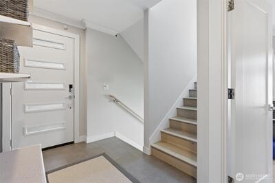 Welcome to Newport Commons—where thoughtful design meets unbeatable convenience. This beautifully crafted 2019 townhome offers a light-filled, open-concept main level with rich hardwoods, crown molding, shiplap accents, and a kitchen enhanced with custom pull-out shelving for effortless access and organization. Three spacious bedrooms each feature private ensuite baths, creating a rare and highly functional layout. A dedicated office supports today’s work-from-home needs, while the lower-level flex space is ideal for a media room, playroom, or guest retreat. Custom built-ins in the foyer and garage maximize storage, complemented by a 2-car garage for everyday ease. Ideally located within walking distance to Factoria Mall, T&M Superstore, dining, and daily amenities, with seamless access to I-90 and I-405 for quick commutes to Bellevue and Seattle. Walking distance to Tyee Middle and Newport High, this home delivers comfort, versatility, and long-term value.