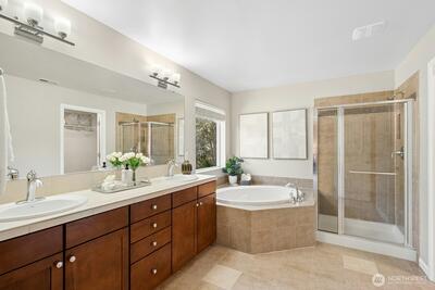 Rare oversized backyard sets this Kensington Park home apart—offering exceptional outdoor space w/ an extended patio, perfect for entertaining, relaxing, or play. Inside, enjoy hardwood floors throughout the lower level & a bright, open layout. The kitchen features SS appliances, granite slab countertops, gas cooktop, & pantry, flowing seamlessly into the dining & living areas anchored by a cozy gas fireplace—creating a warm, light-filled gathering space. Built by D.R. Horton, this thoughtfully designed home offers both comfort & functionality. Upstairs includes a spacious primary suite w/ walk-in closet, convenient upstairs laundry, plus 2 guest bedrooms & a full bath. A versatile media/office nook adds flexible space for work or hobbies. 2-car garage w/ vertical storage shelving completes the home. Freshly painted interior. Located in North Bothell, close to shopping, dining, schools, freeways, & Tambark Creek Park/playground.