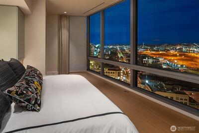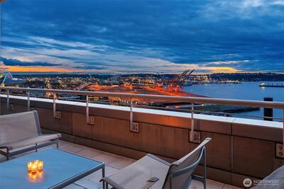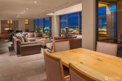 A rare offering within Seattle’s most discreet address, of more than 4,500 sf spans 2 floors with expansive West & Southwest facing water & mtn views. This bespoke residence at Millennium Tower was built to the most rigorous tolerances & only the finest surfaces & materials were considered. The floor plan offers a large open kitchen with a massive slab-stone island, a sunroom w/ custom-built-in banquet & under-counter TV, large wine storage & 2 dishwashers. 3 bdrms, 3 baths, 2 offices, a large mezzanine, media room & a large covered balcony w/ plumbed-in gas. Addl. features include a mechanical room, A/C, Lutron shades & lighting. Offered fully furnished. 3 secure parking & XL storage. On-site manager M-F. Private residential entrance.
