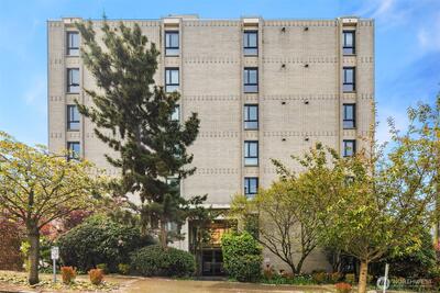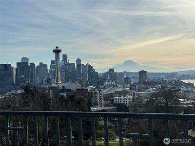 Your search is over- this condo was thoughtfully updated to enjoy for years to come! Not a typical first floor unit- it’s perched with stunning Elliott Bay views from an elevated deck! Sought after Queen Anne high-rise adjacent to the Consulate & 1 flat block to Kerry Park ~ ICONIC views ~while centrally located near retail & dining!! Unit underwent a $100k remodel in 2021! Boasting all new LVP flooring, Hunter Douglas Duolite cellular shades, solid 5 panel doors, modern lighting, polished chrome fixtures/hardware & much more! 2 Spacious bedrooms with custom closet organizers! Only one bathroom, but it’s truly EXTRAORDINARY!! Daltile porcelain microban tilework, Jacuzzi Tub, TOTO toilet (IYKYK), Spacious vanity with Pental quartz & Ultra premium oversized LED mirror! Sunny & bright corner-unit has an open "great room" flow, but the Kitchen…YES please! Open shelving, custom cobalt tile backsplash, SS appliances, pantry & quartz breakfast bar! Convenient in-unit laundry room and