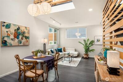 Urban sophistication meets sustainable design in the heart of Capitol Hill. This modern 2 bedroom, 1.75 bath townhome showcases sleek, loft-inspired architecture and Built Green certification, complemented by thoughtfully curated designer finishes throughout. Radiant heated concrete floors, a tankless water heater, mini-split cooling, and eco-friendly PaperStone countertops blend comfort with efficiency, while warm wood accents add depth and character. Soaring ceilings and open-concept living spaces create an airy, light-filled atmosphere designed for effortless entertaining. A private rooftop deck offers city views and the perfect perch for sunset evenings. Just steps from the vibrant Pike/Pine corridor - home to celebrated restaurants, cafés, boutiques, and convenient transit - this residence is tucked within an intimate, welcoming community where style, sustainability, and location converge. Experience the very best of Capitol Hill living.