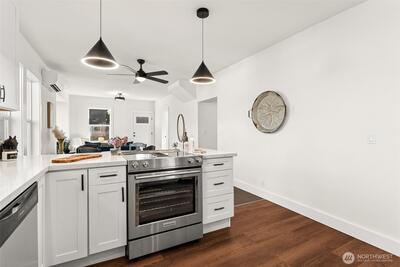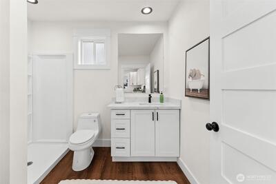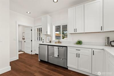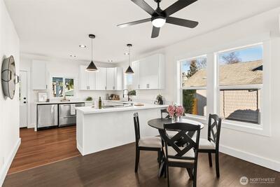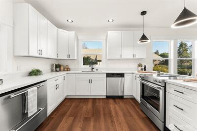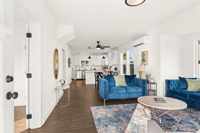 Discover this charming & beautifully updated 1911 home located in the heart of North Tacoma. Blending classic charm with modern conveniences, this property has been meticulously updated with refinished hardwood floors, new interior & exterior paint, drywall, flooring, trim, doors, fixtures, lighting, bathrooms, and kitchen. The main floor offers light-filled living & dining rooms, and the gorgeous kitchen featuring a new sink, fixtures, cabinets, and expansive granite countertops with a breakfast bar, lots of storage, new stainless steel appliances, including a modern in-cabinet refrigerator and freezer, along with one bedroom, a full bath, and a ¾ bath with laundry. Upstairs, you’ll find three good-sized additional bedrooms with peek-a-boo views of the Olympics. Stay comfortable year-round with two new Ductless HP mini-splits & additional wall heat. Wired for solar. The home also includes an 864 sq ft unfinished basement for added storage or additional square footage, alley access