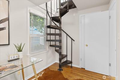 Charm, character, and modern updates abound in this inviting 3 bed/1 bath home! Easy single living with 2 good size bedrooms + den/office with spiral staircase to versatile loft area—perfect as bedroom, office, or creative space. Thoughtfully updated with new siding, heat pump with A/C (2022), and newer roof (2019), this home is truly move-in ready! Remodeled kitchen (2018) features stylish tile, new cabinetry, and butcher block countertops, while recently refinished hardwoods and fresh interior paint are an added bonus. Kitchen/dining space opens to 7,150 sq ft fenced lot - ideal for entertaining, gardening & more. Located minutes from Downtown Burien, you’ll love the easy access to local restaurants and cafes. Commuters will also appreciate the quick drive to Seattle and proximity to the airport, making travel and daily errands seamless. Features lots of driveway parking + convenient shed. A great condo alternative with an assumable VA loan option. Whether you’re a first-time