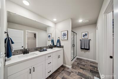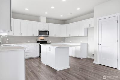 $18K Buyer Bonus! Use toward a rate buy-down or closing costs with Trusted Lender. Enjoy living in Mountain Meadows community that provides small town living in Yelm. Popular Sterling Plan features flexible main level guest suite/office with attached 3/4 bath & walk-in closet. Generous great room with gas fireplace. Designer kitchen with white shaker cabinets, quartz countertops, subway tile backsplash, stainless steel appliances & walk-in pantry. Additional 1/2 bath on the main level. Upstairs, relax in the spacious primary suite with walk-in closet & spa-style bath. Two additional bedrooms plus bonus (5th bedroom). Outdoor living is a dream with professionally landscaped front and backyards. Heat pump for year-round comfort. Local award winning builder, SoundBuilt Homes, at Mountain Meadows is close to schools shopping and easy access to hwys.