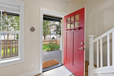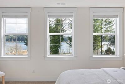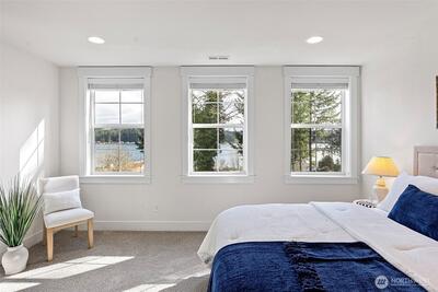 Experience a sense of quiet retreat while savoring the captivating marine views and colorful sunrises over North Bay on Case Inlet, or meander to the beachfront pier and boat launch to recreate, all from this quintessential Cape Cod style view home located in the historic town of Allyn. Situated on one of the premier view properties in the Cottages at North Bay, the meticulously maintained home features 2,236 sq feet of move-in ready living space, an oversized finished 2-car garage with bonus room above, 3 bedrooms including a primary view suite, 2.5 baths, a great room and dining area with light-filled view windows and fireplace, and a kitchen complete with quartz countertops, white wood cabinetry, stainless appliances, a large island perfect for entertaining, and a pantry. Enjoy a cup of coffee year-round from the covered porch overlooking the garden and bay, BBQ on the private patio just steps from the kitchen, or appreciate the nearby restaurants and amenities. Enhancements incl